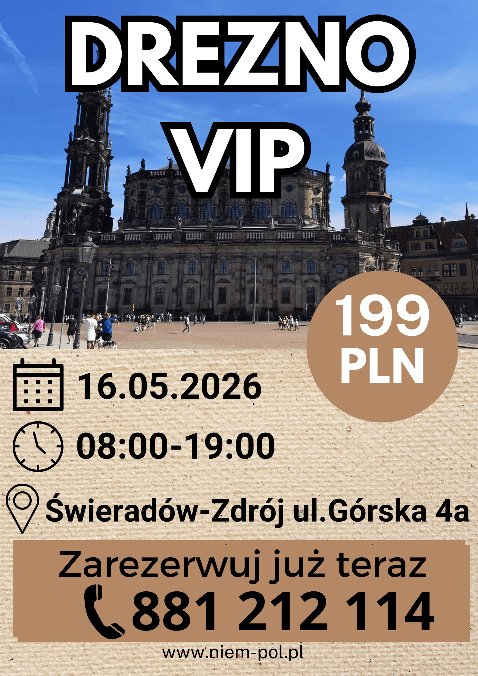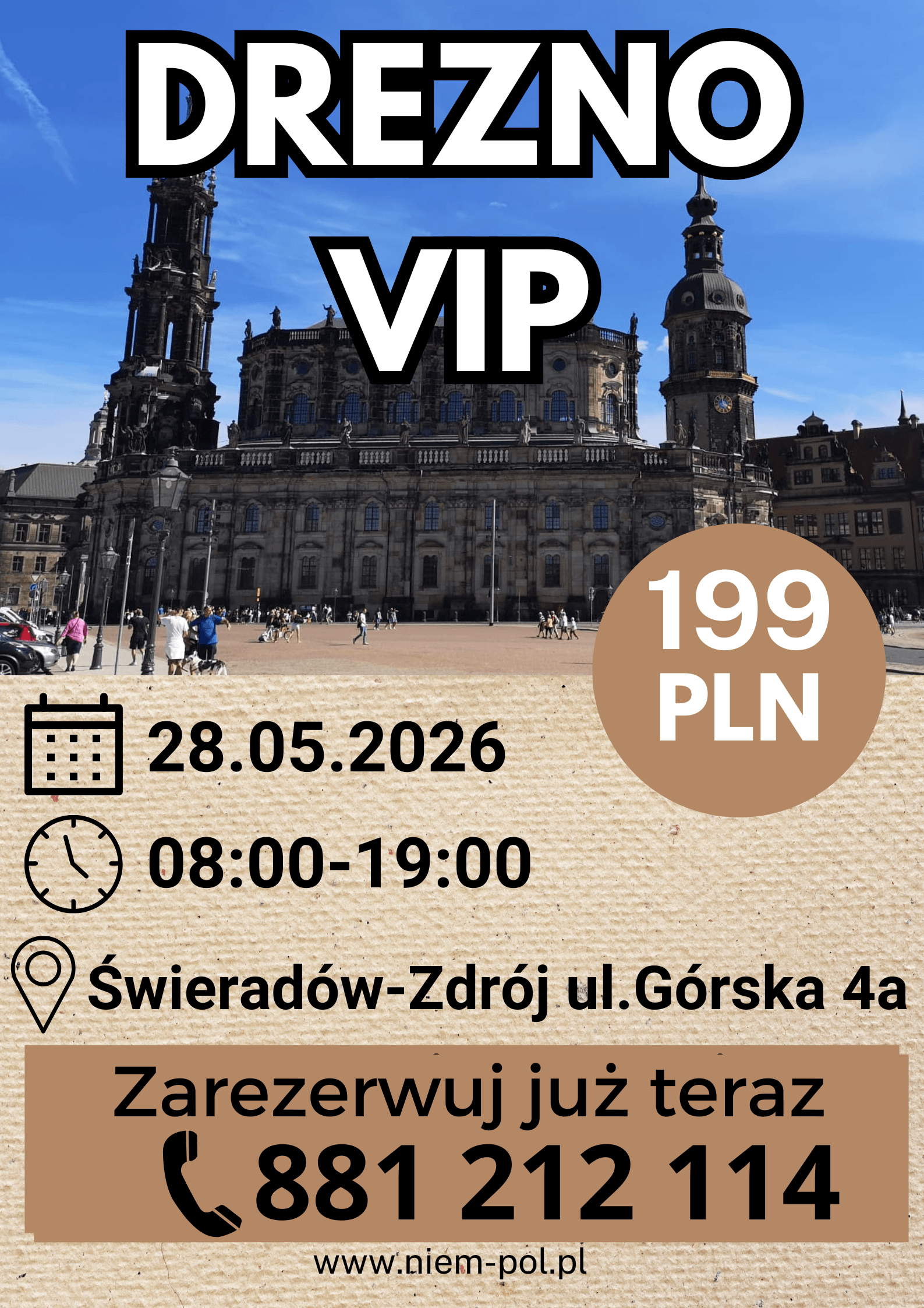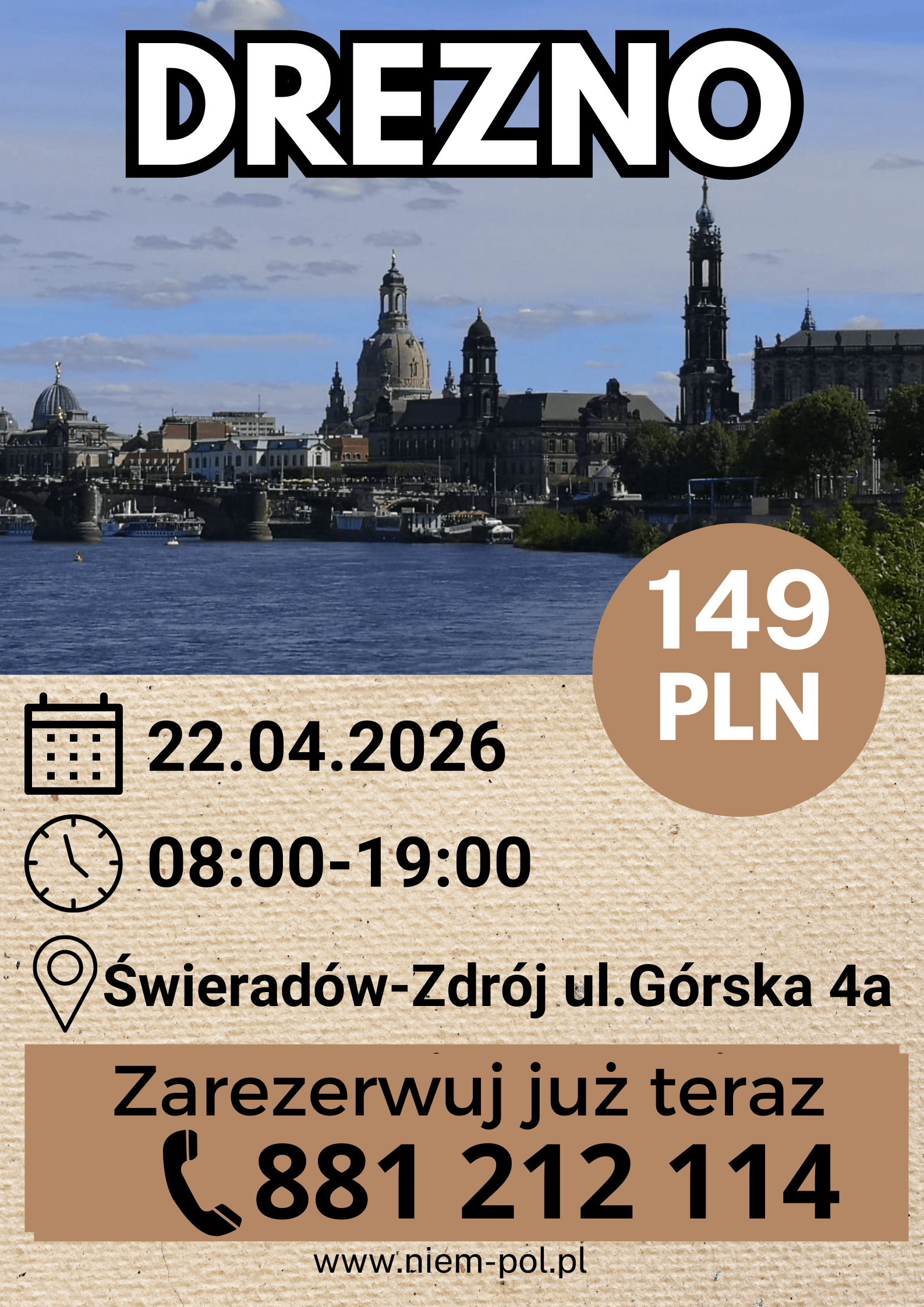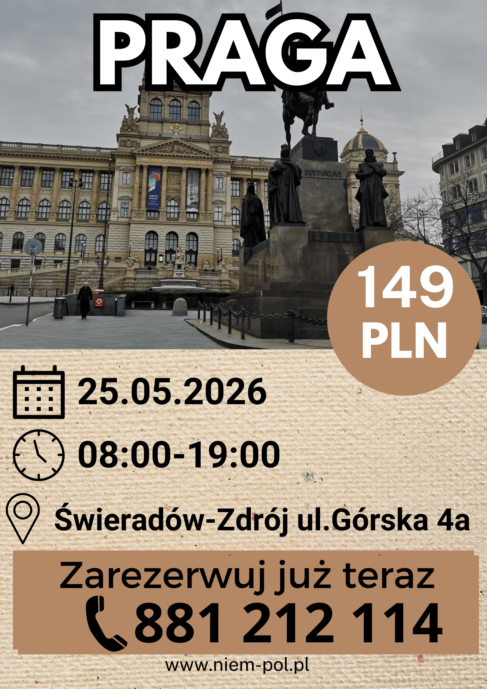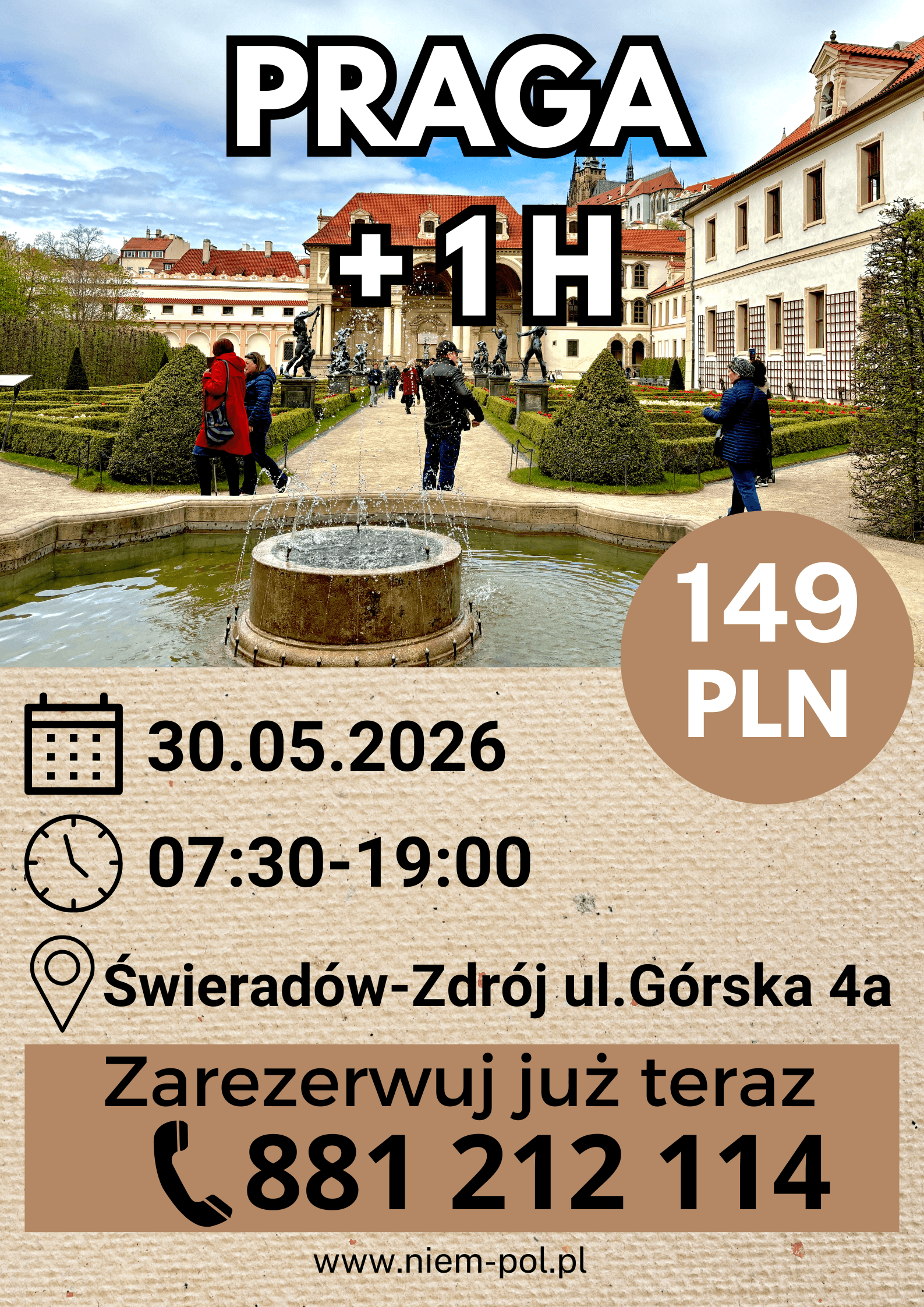 Trustindex sprawdza, czy pierwotnym źródłem recenzji jest Google.Opublikowano na Kaja Kot08/03/2026Byliśmy na wycieczce z okazji dnia kobiet w Czechach.Piekne miasta czeskie Pani z pasją i z zainteresowaniem opowiadała szczegóły w całej wycieczce. Polecam bardzo!Trustindex sprawdza, czy pierwotnym źródłem recenzji jest Google.Opublikowano na Iwona Wyszowska08/03/2026Wycieczka z Niem-Pół Świeradów-Zdrój do Pilzna i Karlowych Warów była bardzo udana i pełna ciekawych atrakcji. Pierwszego dnia odwiedziliśmy Pilzno, gdzie zwiedzaliśmy słynny browar i mogliśmy poznać historię powstawania czeskiego piwa. To było bardzo interesujące doświadczenie i świetna okazja, żeby zobaczyć, jak wygląda produkcja jednego z najbardziej znanych piw na świecie. Drugiego dnia pojechaliśmy do Karlowych Warów. Spacer po pięknym uzdrowisku, kolumnady i degustacja wód mineralnych zrobiły duże wrażenie. Zwiedziliśmy również muzeum Becherovki, gdzie poznaliśmy historię tego słynnego czeskiego likieru. Ogromne podziękowania należą się naszej przewodniczce Magdzie za ciekawe opowieści, świetną organizację i bardzo miłą atmosferę podczas całego wyjazdu. Dziękujemy także kierowcy Andrzejowi za bezpieczną i komfortową podróż. To była naprawdę świetna wycieczka – dobrze zorganizowana, ciekawa i bardzo przyjemna. Zdecydowanie polecam wyjazdy z Niem-Pół Świeradów-Zdrój.Trustindex sprawdza, czy pierwotnym źródłem recenzji jest Google.Opublikowano na Radosław Czerwiński01/03/2026Super.PolecamTrustindex sprawdza, czy pierwotnym źródłem recenzji jest Google.Opublikowano na Rafał Wasiak26/02/2026Dwa dni, dwie fantastyczne wycieczki Budziszyn i Praga. Szczególne podziękowania dla Pani Magdy. Przewodnik z powołania z ogromną wiedzą i niesamowitą zdolnością do przekazania jej słuchajacym Najlepsze biuro podróży, super załogaTrustindex sprawdza, czy pierwotnym źródłem recenzji jest Google.Opublikowano na Joanna21/01/2026Wycieczka Praga VIP -super. Poznaliśmy nie tylko najważniejsze miejsca turystyczne Pragi, ale również dowiedzieliśmy się jak żyją i jacy naprawdę są Czesi. Sympatyczna przewodniczka -pani Magdalena opowiadała tak, że słuchało się z ogromną ciekawością. Byliśmy z 5 latkiem i dał radę. Polecam tą wycieczkę.Trustindex sprawdza, czy pierwotnym źródłem recenzji jest Google.Opublikowano na Beata Przybyło29/11/2025Madgdalena przepięknie opowiada,natomiast Andrzej super prowadzi ( autobus 😃😃😃), chętnie skorzystam z ich usług, ponieważ warto, do zobaczenia w marcu 🥰🥰🥰Trustindex sprawdza, czy pierwotnym źródłem recenzji jest Google.Opublikowano na Małgorzata Paziuk18/11/2025Charyzmatyczna Pani przewodnik, która swoją wiedzą i urokiem osobistym inspiruje do zgłębiania wiedzy o rejonie. Wycieczki z p.Magda to przygoda nie tylko dla ciała ale i dla duszy. Duża jej wiedza oraz umiejetnosc zainteresowania uczestnikow wycieczek a nawet przechodniów pozwoliła mi odkryć Liberec i Gorlitz od nieoczywistej strony. Tak trzymać:) Do spotkania na trasach turystycznych.Trustindex sprawdza, czy pierwotnym źródłem recenzji jest Google.Opublikowano na Teresa Kupiec26/09/2025Właśnie wróciliśmy z wycieczki po zamku we Frydlandzie 26.09.2025. Pełny profesjonalizm. Super kierowca i przewodniczka z ogromną wiedzą i humorem w jednym .